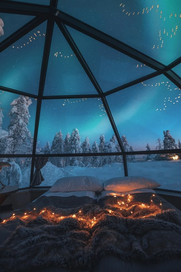 Finnish Lapland, especially around the area of Rovaniemi, provides a magical setting with its snow-covered forests and cozy glass igloos, perfect for aurora watching. Imagine a ceremony beneath the stars, with the Northern Lights dancing above, followed by a stay in a luxurious igloo hotel.